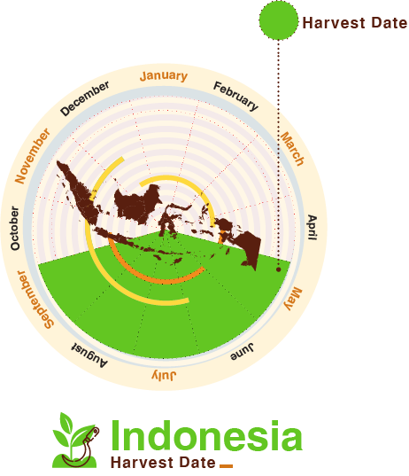 • فترات الحصاد جافا: بين يوليو – اكتوبر